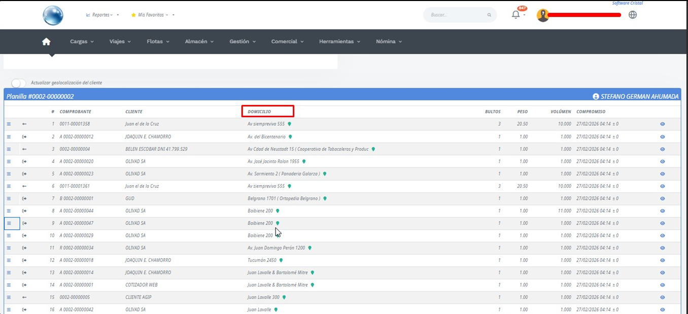 Si acercamos la pantalla podemos notar que tenemos un envío para entregar el 15/10 a la 5.35 y el siguiente a las 3.02 por lo que ya estamos de sobre aviso de que vamos a atrasarnos en el servicio.