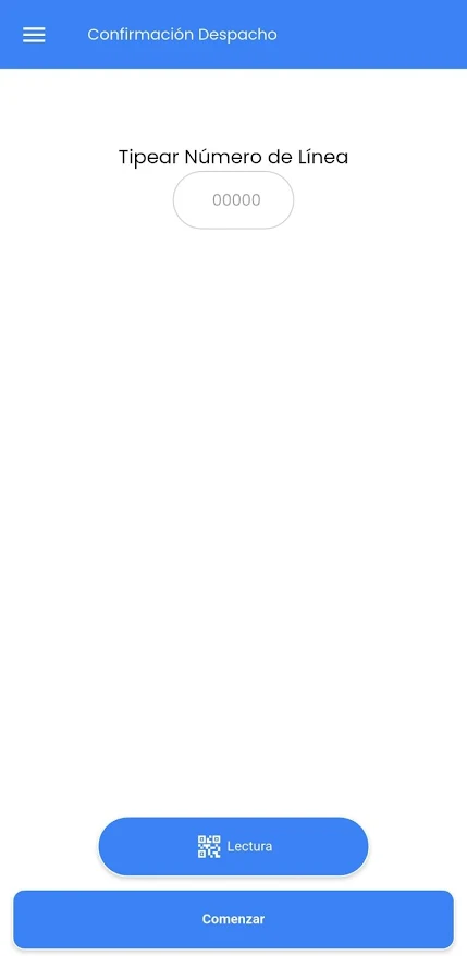 Una vez ingresado el Número de Línea presionamos el botón "Comenzar" que se encuentra al pie y en la imagen se muestra con una flecha del color rojo o sino se puede leer el QR de la Línea mediante el boton "Lectura" que abrirá el lector. Este codigo QR se puede generar en Cristal Desktop desde la opción de "Definición de Líneas"