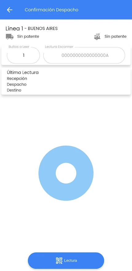 Una vez que la carga es recibida en la sucursal origen y etiquetada con su correspondiente Rótulo de Recepción, los responsables de la carga de los camiones informarán qué línea están cargando en su dispositivo móvil (Teléfono, Tablet o cualquier dispositivo Android) y comenzarán la lectura de las etiquetas.